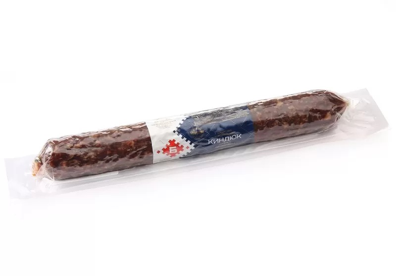 "Киндюк" сделанная из крупных кусков мяса (на срезе они отчетливо видны).Сырокопченая колбаса — продукт любимый многими. Обязательный гость праздничного стола, а некоторые не представляют завтрак без нее. Пряный аромат, умеренная жирность и разнообразие вкусовых оттенков завоевали любовь потребителей. Изготовленная с соблюдением технологии колбаса является деликатесом. Продукт замечательно вписывается в разные блюда, от бутербродов до нарезок